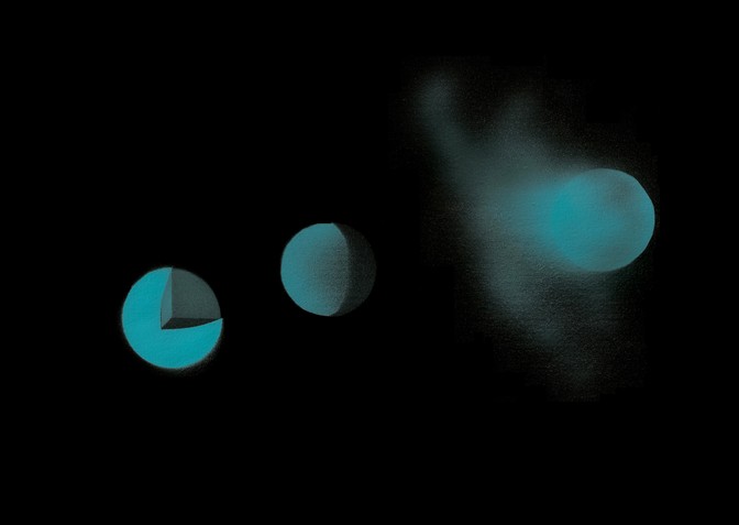 In the Supertheory series I am dealing with how scientific information functions in popular culture. This work of mine is concerned with the ways in which knowledge existing in the form of numbers, calculations, data sets, or formulae is translated into the language of the visual in order to make it more accessible to the so-called amateurs, as well as with the ways in which such representations affect perception of reality. I am paying particular attention here to the moment—essential to me—when visualisations cease to only be teaching aids as they become at the same time a certain image of the world; when the scientific nature of illustrations fades away and their aesthetic function comes to the fore. In these works I make references to astronomical photographs, models, and visualisations found in popular science publications, and also to sci-fi-themed illustrations.